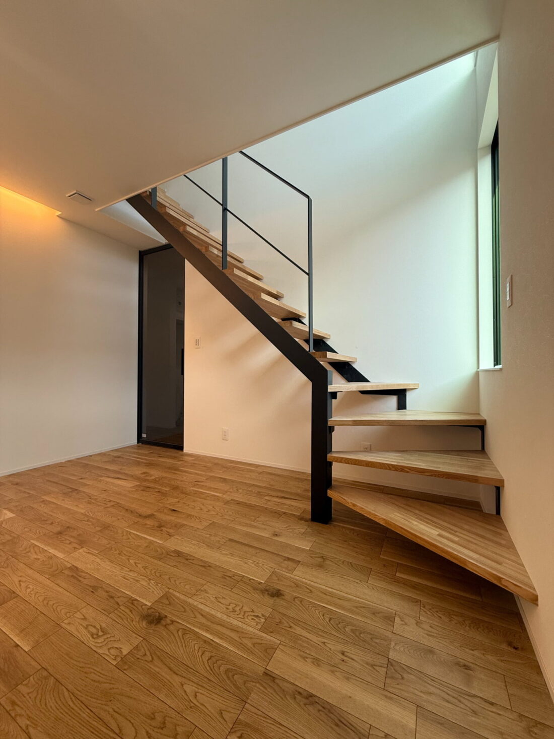 縦長FIX窓を配した吹抜け階段が空間に奥行きと抜け感をプラス。