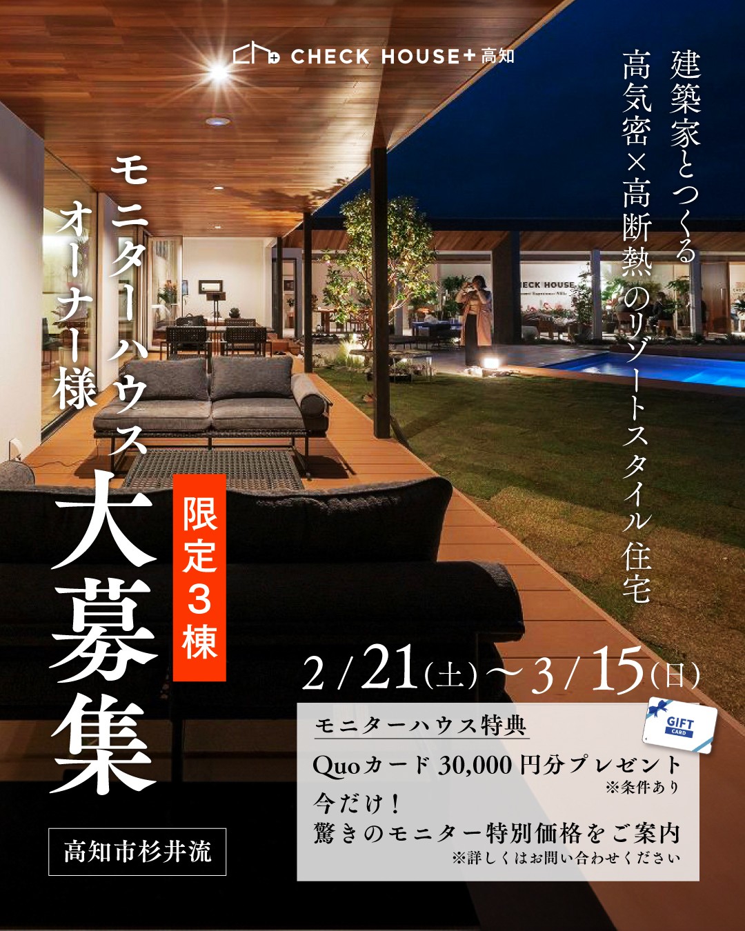 今ならモニターハウスオーナー様限定の