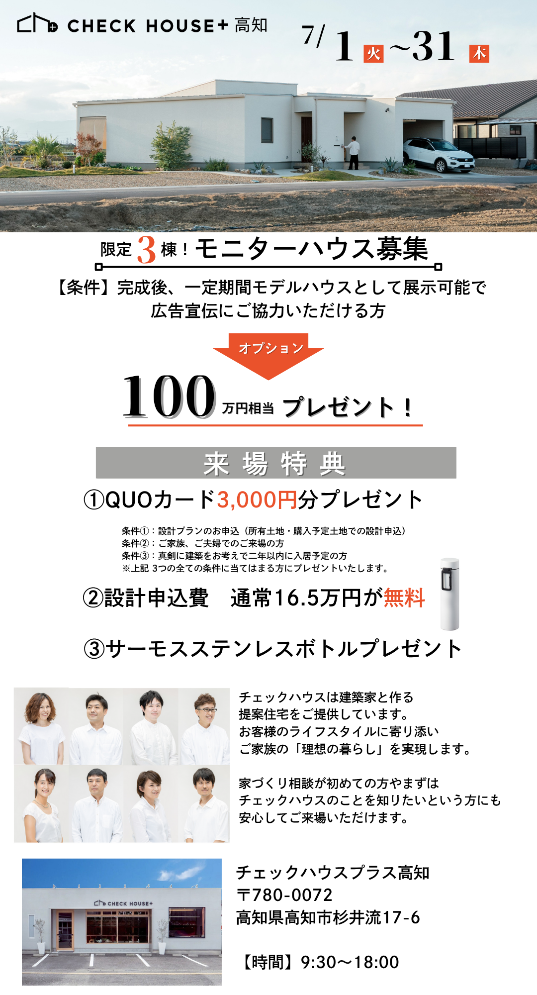 【終了しました】7/1~31 GRANDOPEN特典【モニターハウス募集!】